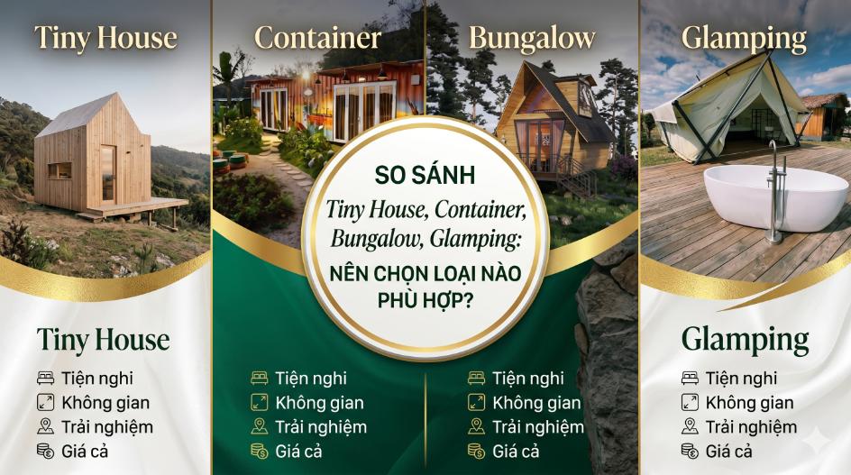 Nên chọn tiny house, nhà container hay bungalow, glamping? So sánh chi...