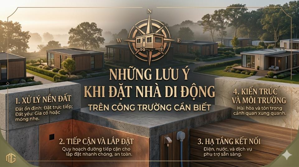 Khi đặt nhà di động trên công trường, cần chú ý đến vị trí lắp đặt, nề...