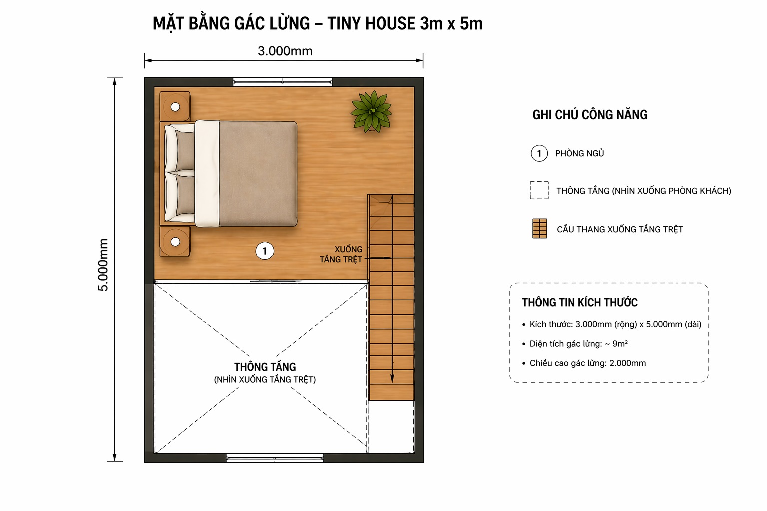 - Gác lửng: khu ngủ riêng tư