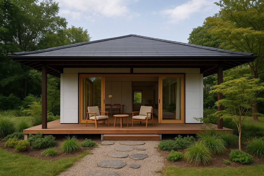 Biệt thự Panel phong cách Nhật Bản 1 tầng với thiết kế tối giản, mái d...