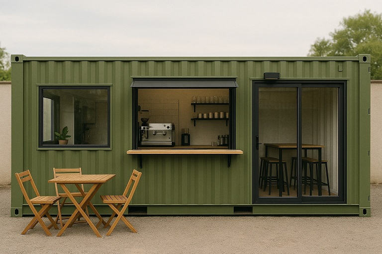 Mô hình quán cà phê, trà sữa, shop lưu động bằng container với thiết k...
