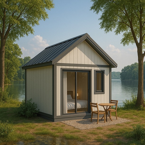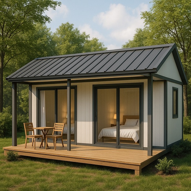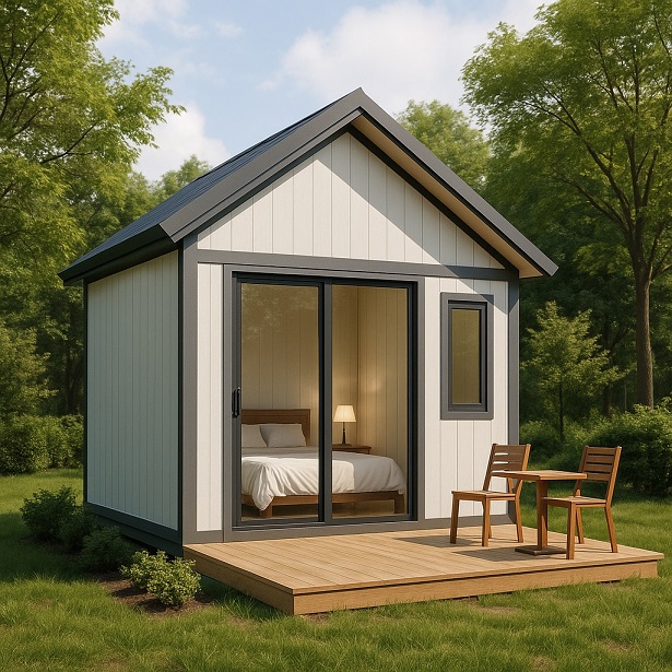Mẫu nhà nghỉ dưỡng 1 phòng ngủ bằng Panel, thiết kế tối giản hiện đại,...